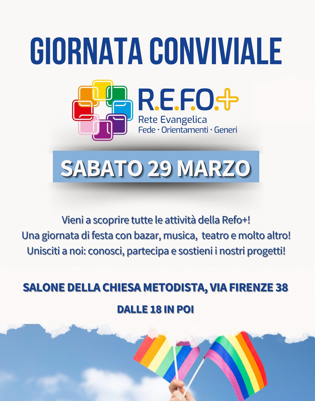 La REFO+ organizza molte iniziative in tutta Italia, soprattutto nelle chiese, per il pieno riconoscimento e valorizzazione di tutte le identità LGBTIAQ, con convegni e tavole rotonde, gruppi di studio biblici e momenti di preghiera, presidi e manifestazioni. “Per i Diritti Umani” organizza incontri pubblici, corsi presso istituti scolastici e incontri con autori. Entrambe le associazioni hanno un proprio sito internet con interviste, articoli e recensioni. Con questo evento si sono trovate a convergere sul benessere mentale delle persone LGBTIAQ. Ne è nata una intervista con Emanuele Crociani, della chiesa battista di Milano – via Pinamonte da Vimercate e co-presidente della Refo.