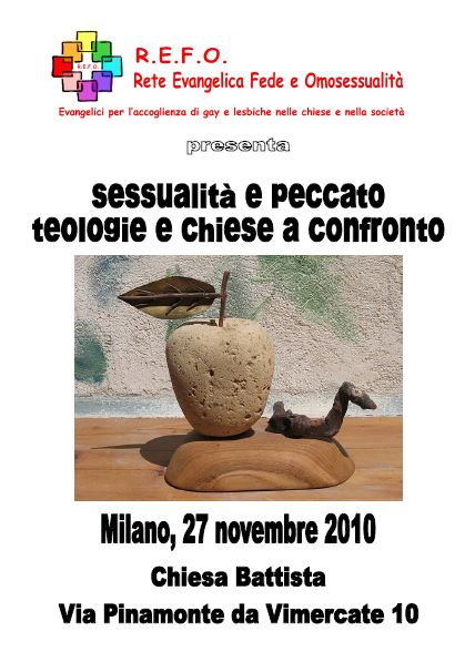 A margine di questi eventi la REFO – Rete Evangelica Fede e Omosessualità, celebrerà la sua Assemblea Annua nella serata del venerdì 26 novembre, sempre presso gli stessi locali.